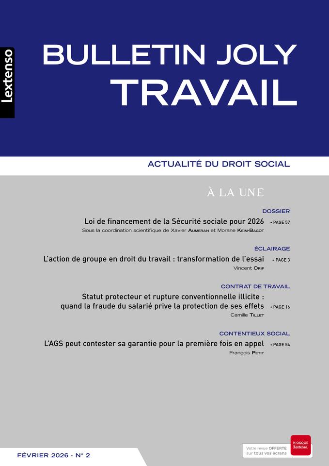 Pensé pour devenir un véritable outil de travail dans tous les environnements professionnels, le Nouveau Bulletin Joly Travail donne la parole à l’ensemble des acteurs du droit social – universitaires et praticiens, avocats, magistrats, juristes d’entreprise, membres d’organisations professionnelles – et offre un panorama inédit des décisions des décisions de juges du fond – cours d’appel, conseils de prud’hommes, tribunaux des affaires de sécurité sociale… – au plus près de l’ordinaire des praticiens.