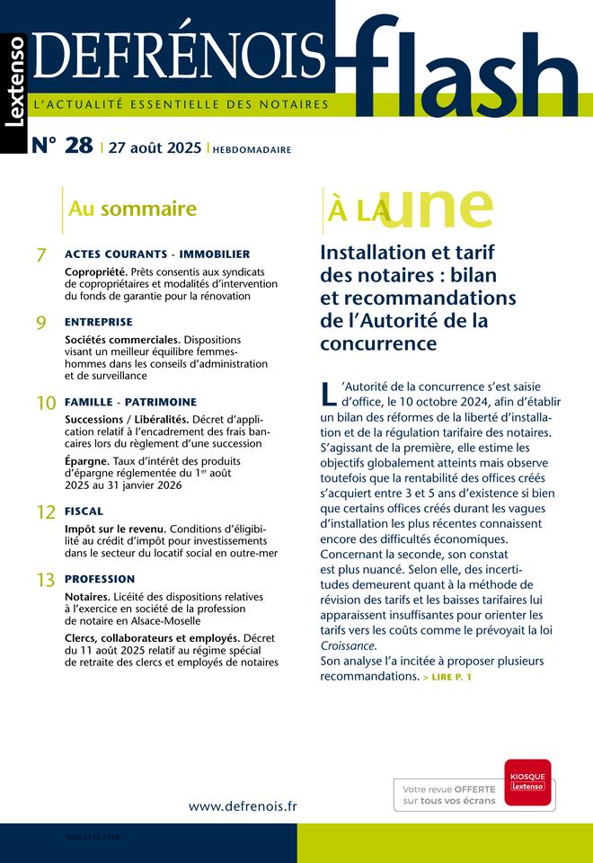 Complément indispensable du Defrénois, le flash offre chaque semaine aux professionnels du notariat et aux praticiens proches de cet univers un accès direct aux informations prioritaires qu’ils doivent maîtriser dans leur exercice quotidien. Mise en perspective et « contextualisée », l’actualité essentielle est dans le flash.