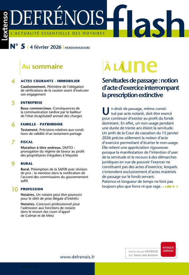 Complément indispensable du Defrénois, le flash offre chaque semaine aux professionnels du notariat et aux praticiens proches de cet univers un accès direct aux informations prioritaires qu’ils doivent maîtriser dans leur exercice quotidien. Mise en perspective et « contextualisée », l’actualité essentielle est dans le flash.