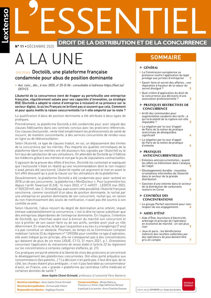 L'ESSENTIEL Droit de la distribution et de la concurrence