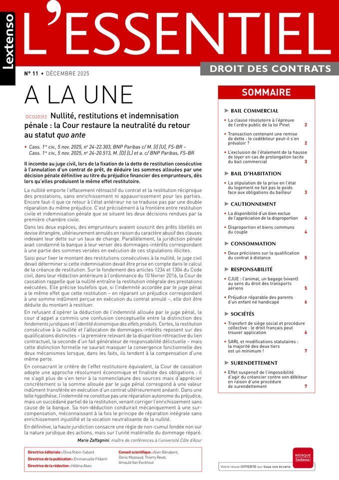 Nullité, restitutions et indemnisation pénale : la Cour restaure la neutralité du retour au statut quo ante